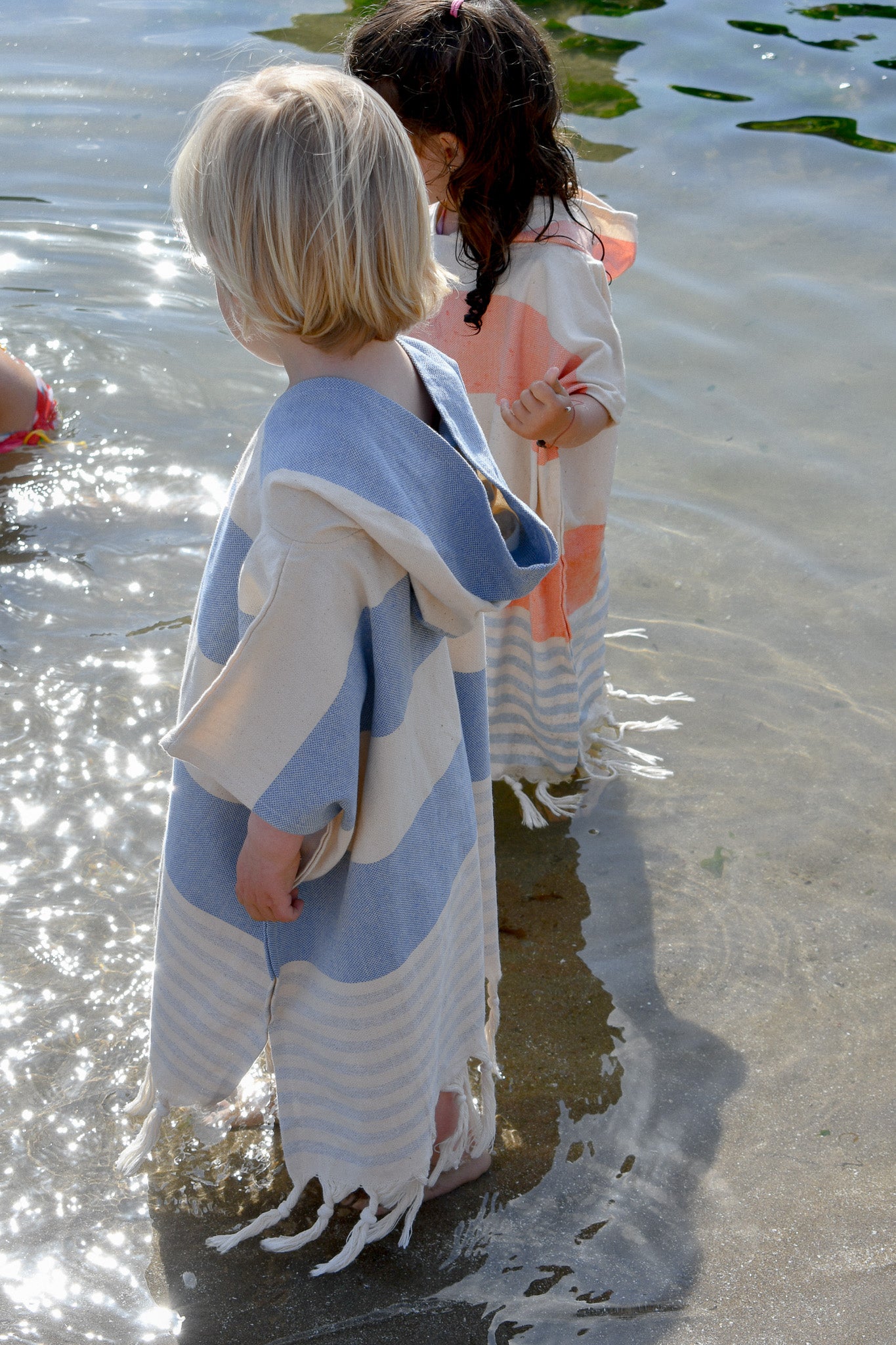 Estos ponchos de niñ@s están hechos con la misma tela de nuestras toallas turcas: livianos, delgados, súper absorbentes y de secado rápido.¡Perfectos para que tus niños estén secos, cómodos y lindos este verano!