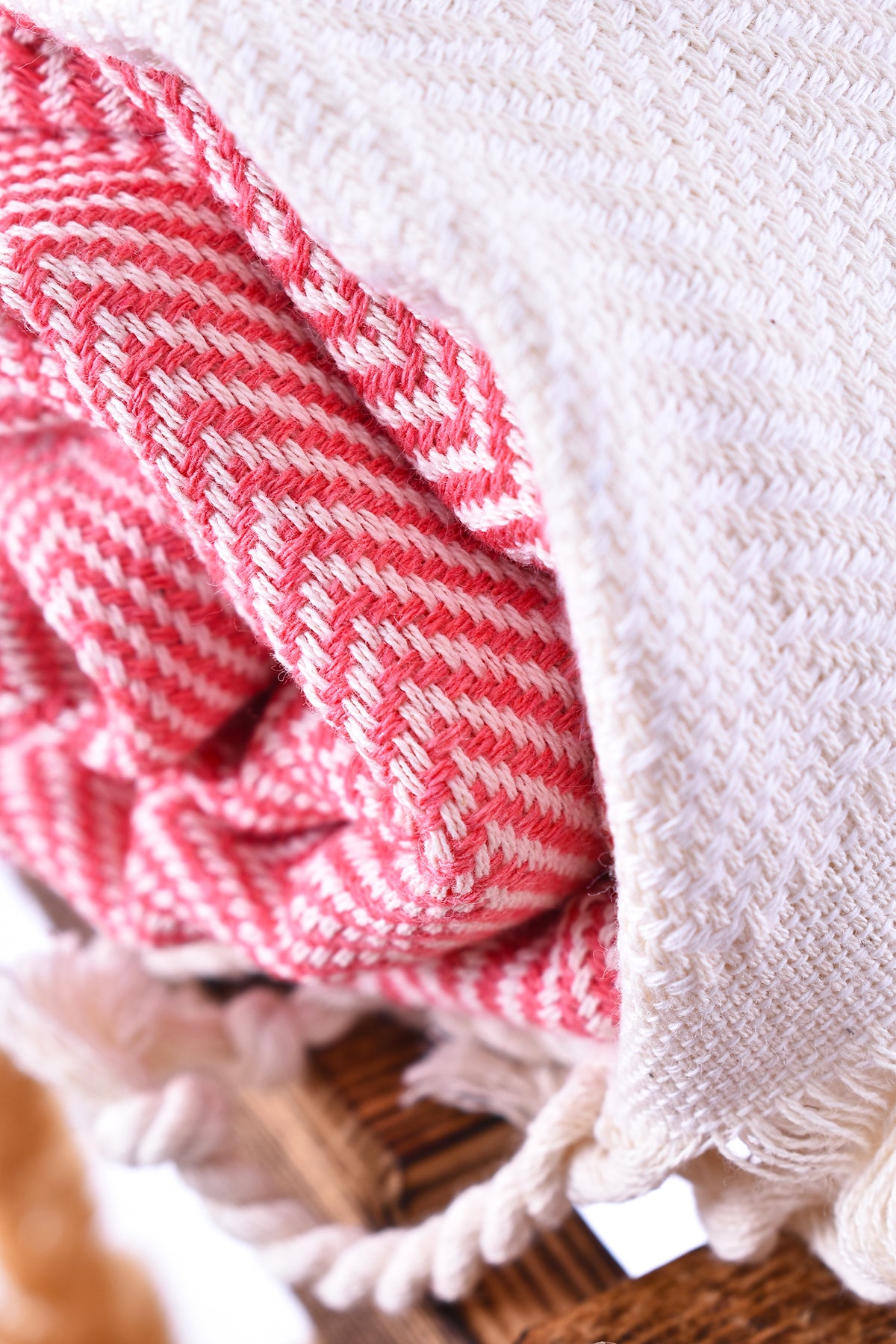 👉🏻Diseño: color sólido, tejido firme y bien saturado, con franjas crema en los extremos que lo enmarcan. Estética sobria, limpia y elegante.